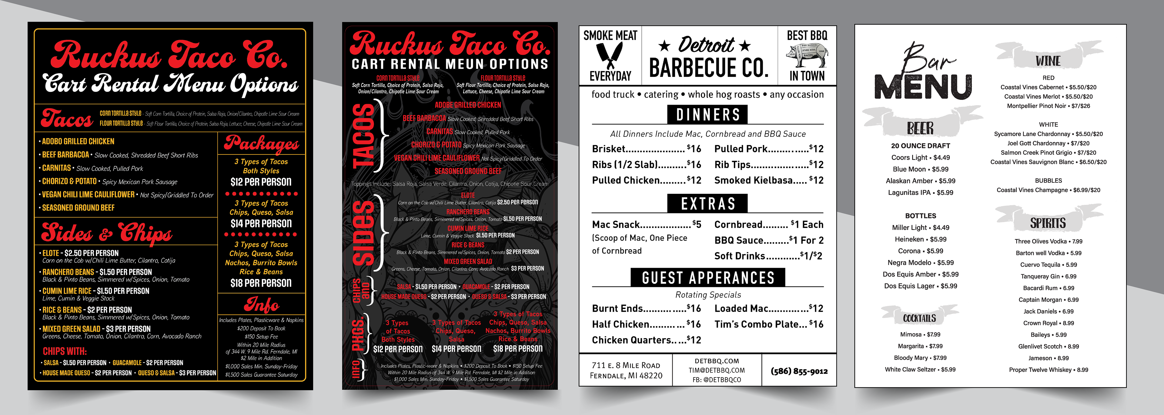 Design and Layout of Menus for Restaurants, Bars & Food Trucks